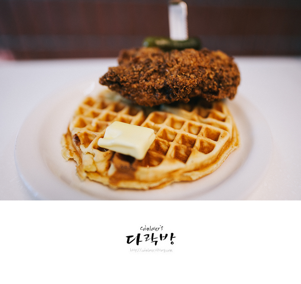 치킨이 정말 맛있었다. 메이플시럽과 와플과 버터와 치킨의 조합은 묘한 시너지 효과를 낸다.
