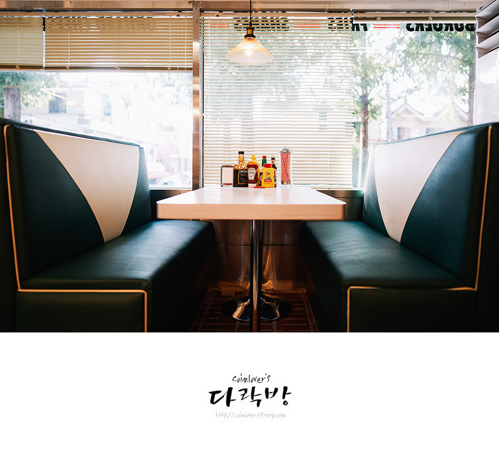 70-80년대 미국의 햄버거집을 모티브로 한 듯한 깔끔한 레트로 스타일의