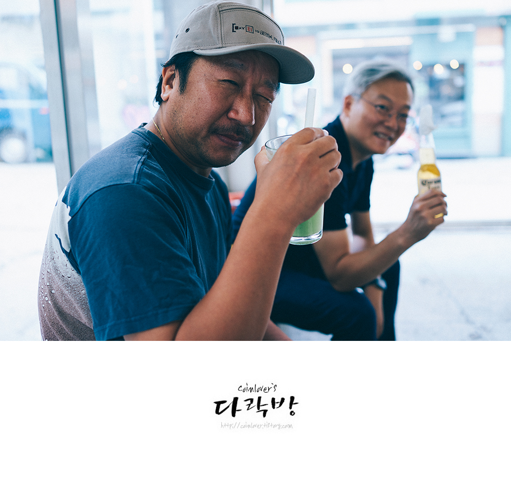 전날 광주 전시 오프닝 뒷풀이로 내상을 입으신 박진영 작가님은 메로나 맛의 건강음료를.