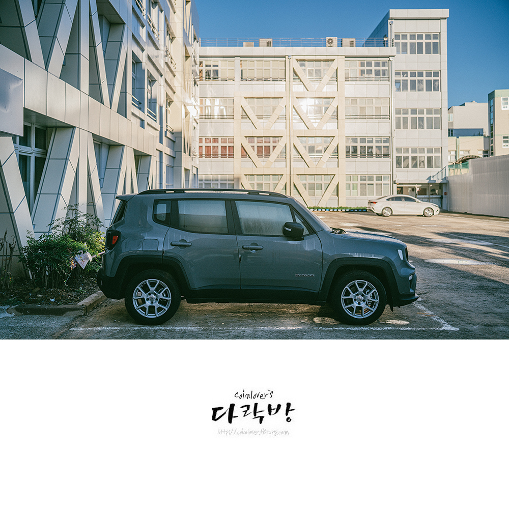수요일 저녁 달라스치킨에서 치맥을 즐기느라 학교에 두고간 레니게이드. 심한 일교차로 인해 이슬 샤워를 한 처절한 몰골.항상 우리 아파트 지하주차장 좋은 자리에서 편하게 지내다 이게 왠일인가 싶었을 듯. 센서류 등의 고장이 잦아서 너무 덥거나 추운곳에 내놓을 수가 없는 금쪽이다. 오직 외관 하나만 보고 타야하는 최악의 가성비 차량.
