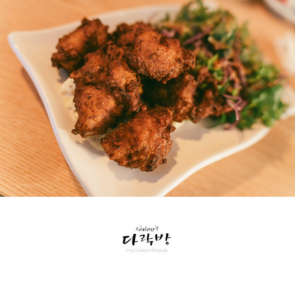 주문을 했더니 오토시가 나왔다. 계란, 마요네즈, 감자 등등이 섞여 있는 타르타르 계열(?)의 소스와 찍어먹을 양배추였다. 별것 아닌데 맛있었다. 진주우동의 가라아게에 함께 나오는 타르타르소스가 극호였는데 이것 역시 극호다.