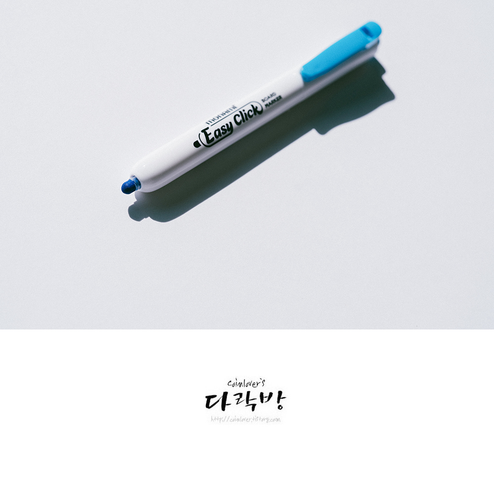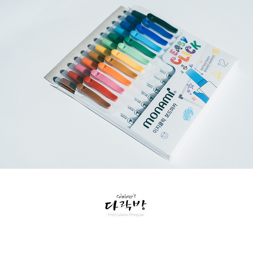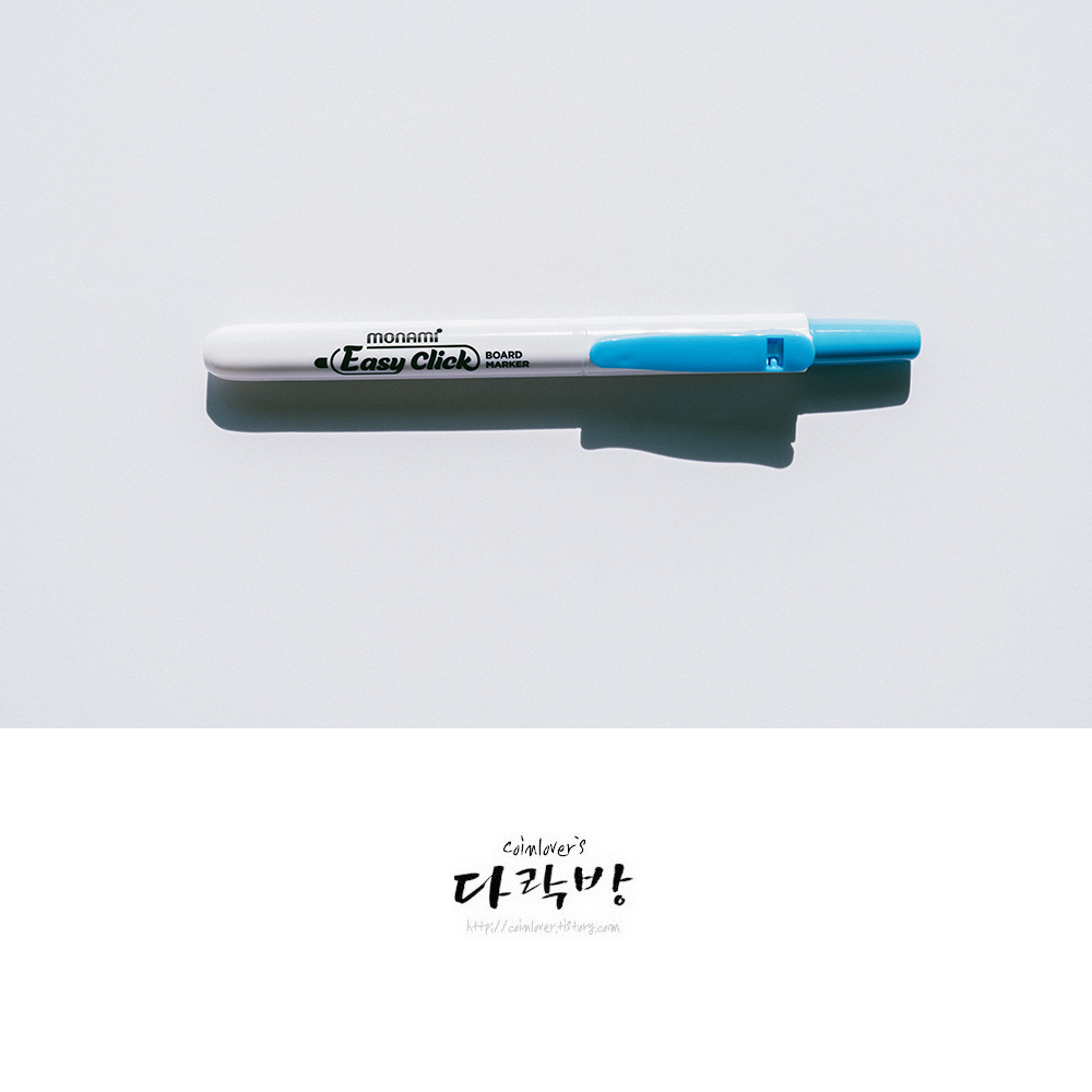 모나미 펜클럽 7기 2번째 리뷰 제품으로 전달받은 이지클릭 보드마카. 직업이 직업인지라 보드마카를 자주 쓸 수 밖에 없는데 마침 딱 바라던 컨셉의 제품이 손에 들어와서 아주 만족스러웠다.