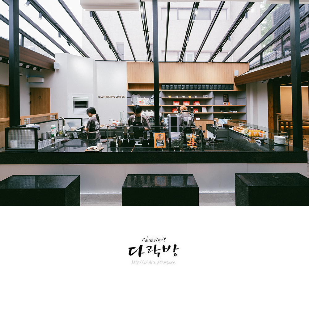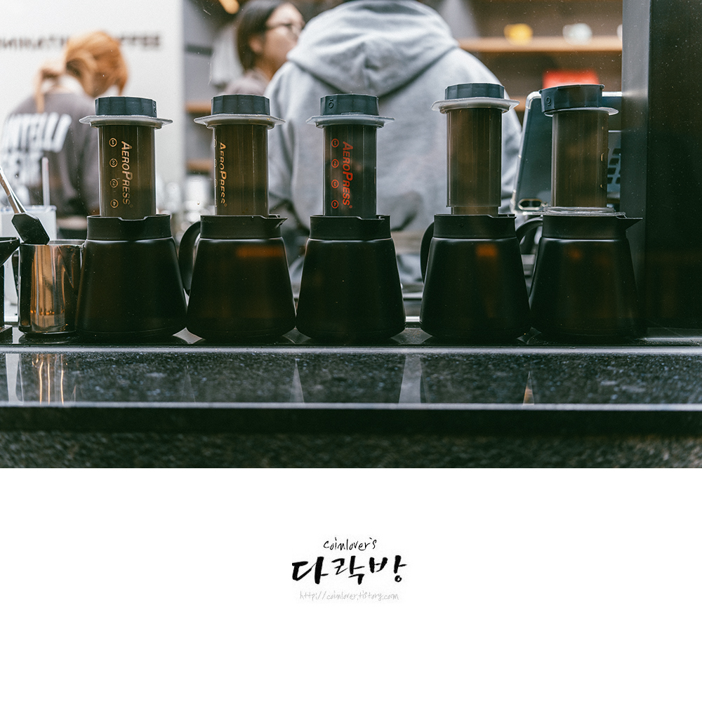 지난 4월 이후 오랜만에 들린 인텔리젠시아 서촌점. 아침에 갔더니 웨이팅 없이 입장 가능했다(웨이팅이 없어진걸까?) 본사 정책으로 드립이 아닌 에어로프레스로 추출 방식이 바꼈는데 뭔가 느낌이 많이 바뀐듯. 요즘 커피 잘하는 곳을 워낙 많이 돌아다녀서 그런건지 인텔리젠시아의 커피가 밍밍하게 느껴져 당황스러웠다.