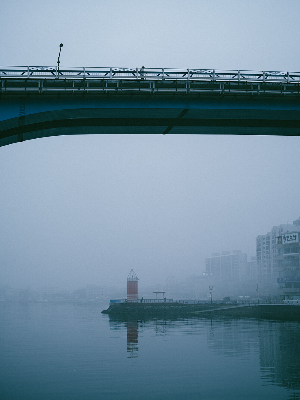 이젠 하도 많이 찍어서 더 찍을 필요도 없다는 생각이 들 정도로 흔한 풍경을 또 담았다. 변명 같지만 동어반복 속에서 늬앙스가 묘하게 다른 것이 튀어나오곤 한다. 그중에 괜찮은 말맛을 가진 한 문장을 건져내는 것, 글을 쓰듯 사진을 찍는다. 사진기는 한계가 명확한 도구이기에 절구나 하이쿠처럼 계속 감각을 갈고 닦을 수밖에 없다. 산문에 능하지 못한 나는 사진에서도 시 같이 반짝이는 짧은 호흡을 토해내고자 하지만 비루한 표현력으로 인해 항상 의도를 비껴가는 뭔가를 만들어 버리고 만다.