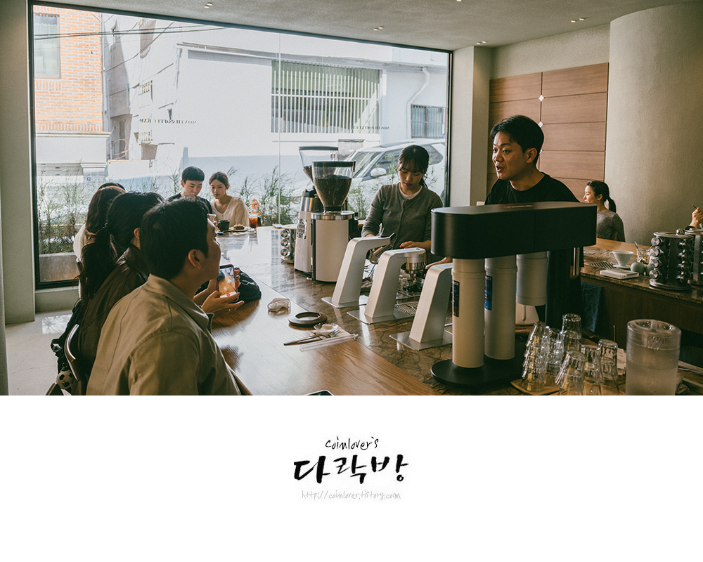 전포카페거리에서도 커피 잘한다고 특히 이름난 몇 군데가 있는데 그중에 하나인 먼스커피바. 가정집을 개조해 만든 공간으로 특히 1층의 바 공간에 앉아서 마셔야 제대로인데..... 사람이 많아 그렇게 즐길 수가 없다. 카페 오픈런을 하면 모르겠다만. 유튜버나 맛집 블로거들이 콘텐츠로 풀어놓는 건 가게 손님이 많지 않을 때, 여유롭게 즐길 수 있는 최상의 컨디션을 상정한 내용이고, 나 같은 일반인은 그 상태를 만나기 힘들다. 2층 공간은 그나마 여유가 있어서 앉을 수 있었으니 다행. 커피 유튜버들이 극찬하듯 커피는 당연히 맛있다. (사진에도 나와있는) 문헌관 바리스타의 실력이야 의심할 필요가 있겠는가. 무릎을 굽히고 눈높이를 맞춘 채로 해주는 커피 설명도 좋다(굳이 그렇게 까지나 안 하셔도 좋을 것 같지만). 하지만 요즘은 스페셜티 카페들이 워낙 상향 평준화가 되어 있어서 꼭 여기여야 한다는 요소는 찾아내지 못했다. 뚱구리는 진주의 목요일 오후네시에서도 마셔봤는데 나는 목네 쪽에 한 표를 던지고 싶다.