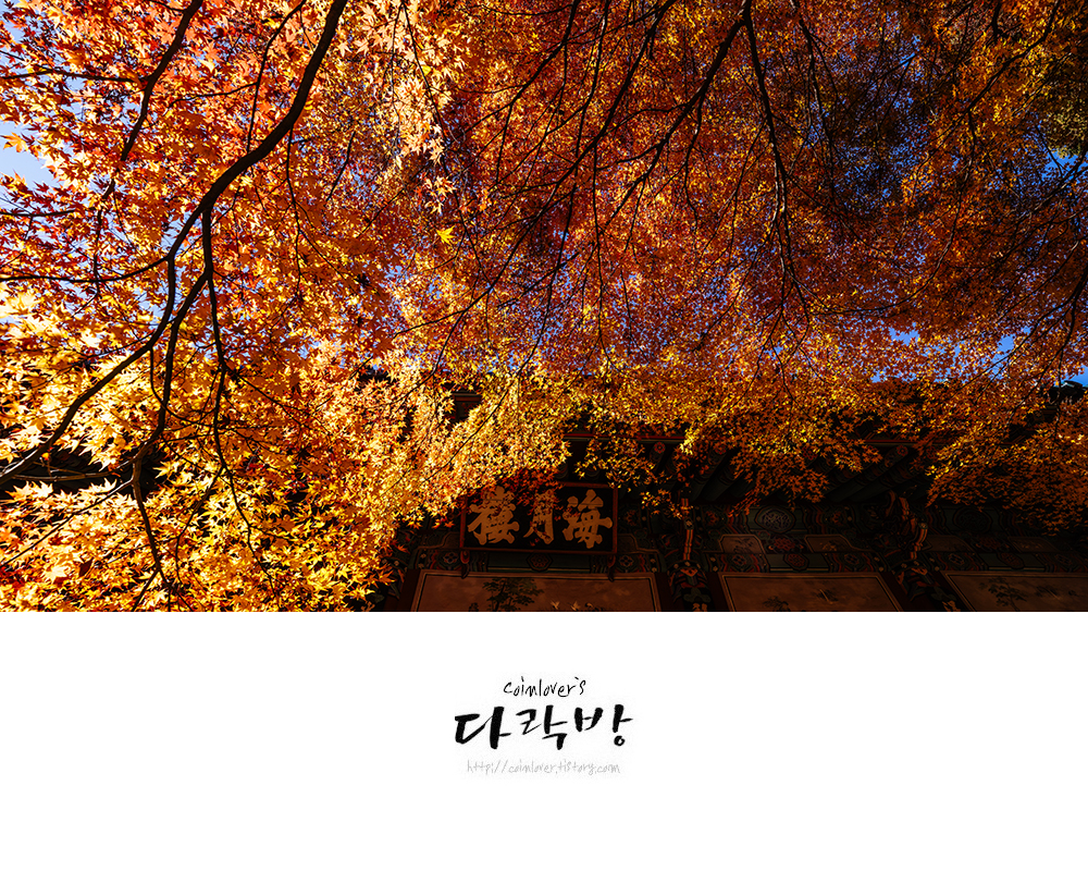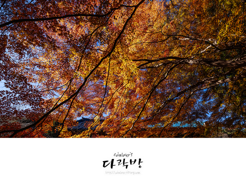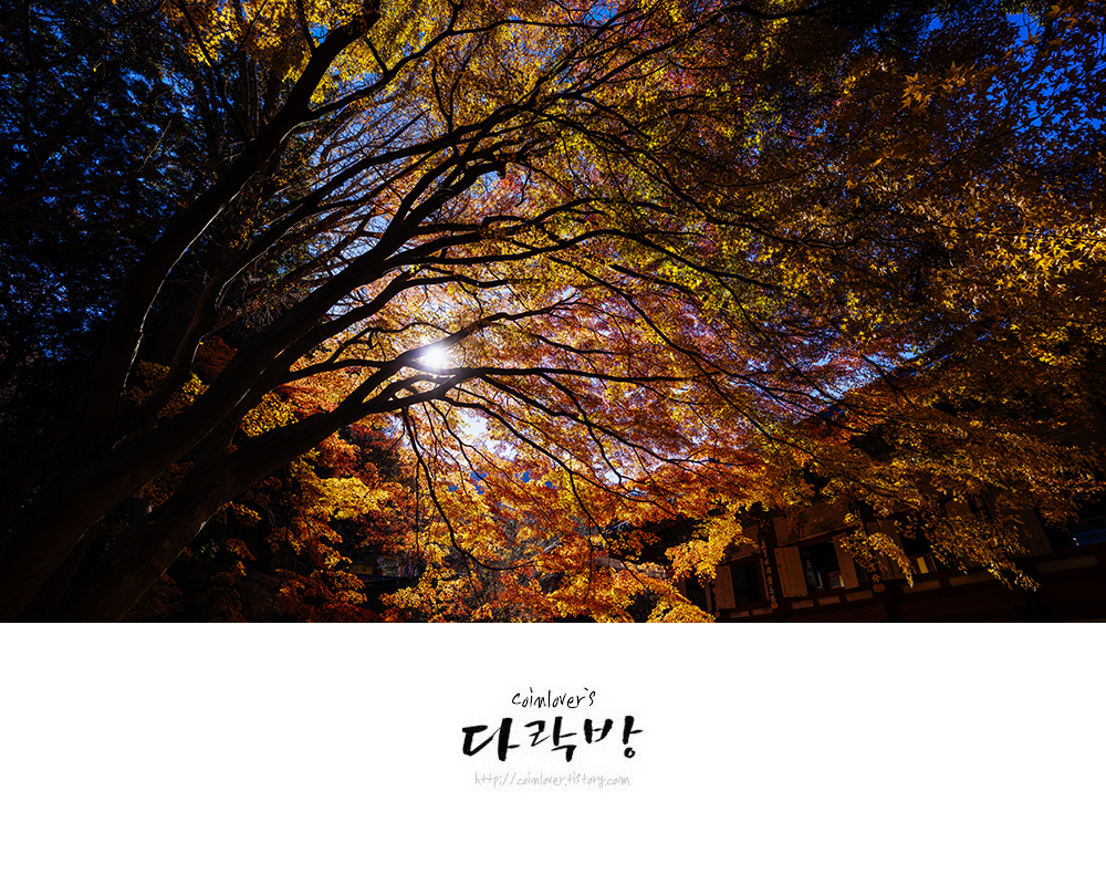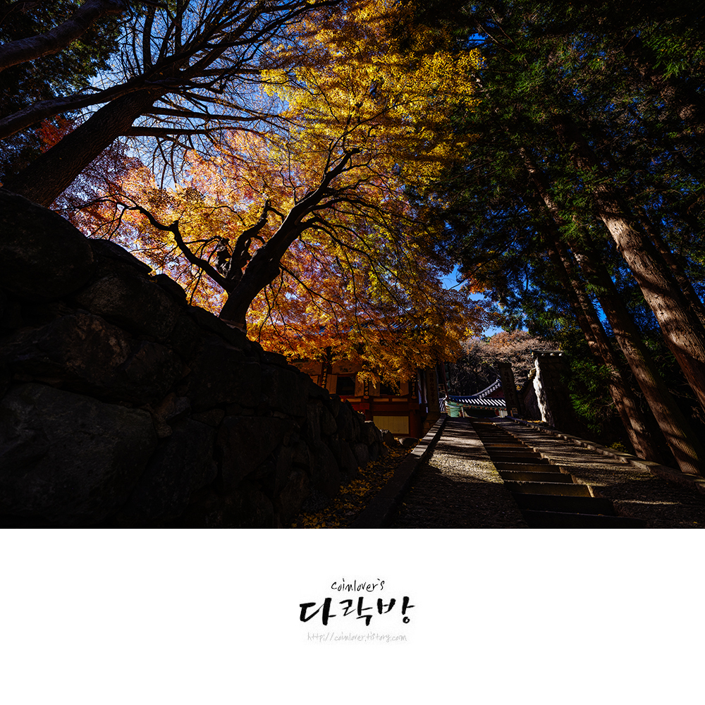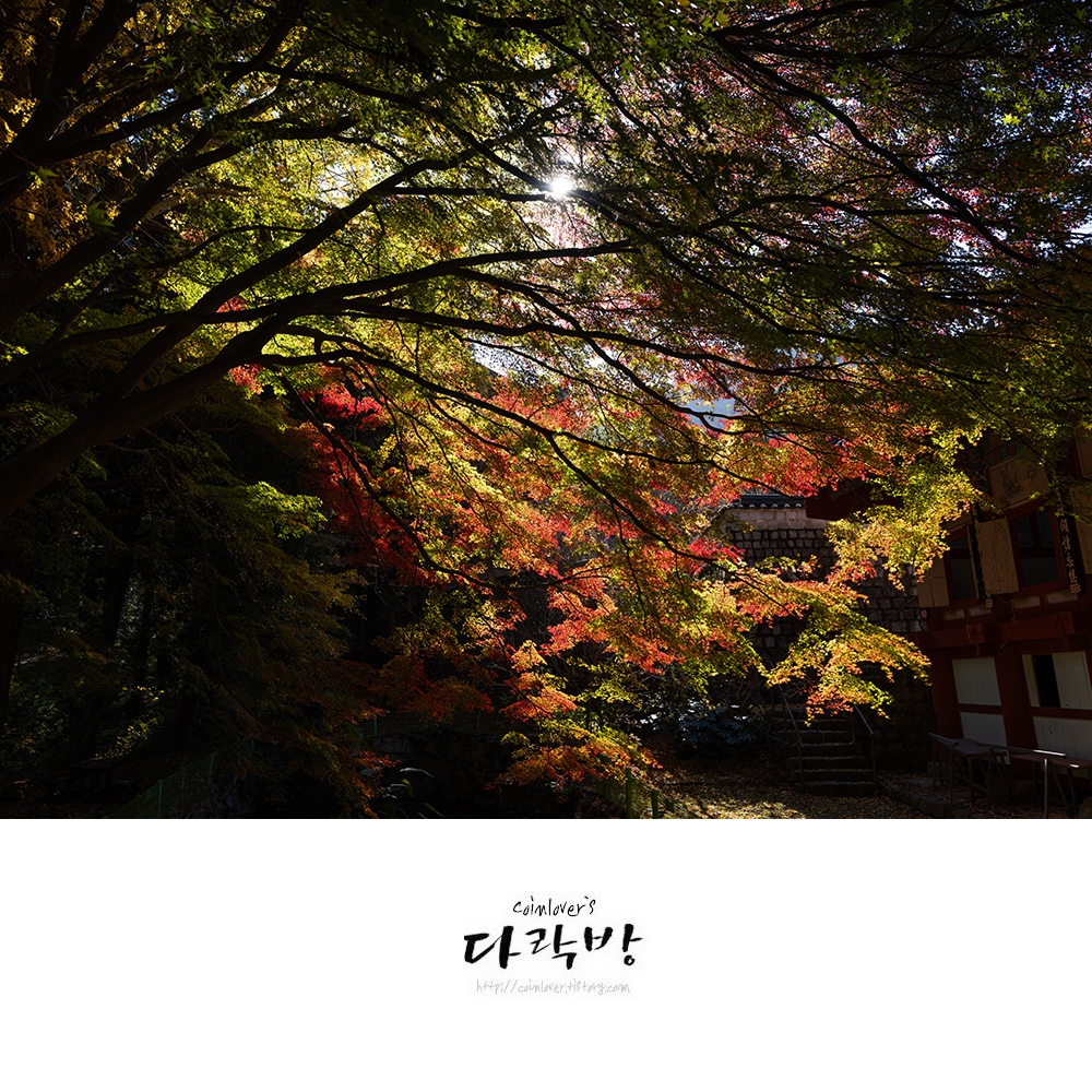 11월 28일의 용화사. 여긴 다른 곳 보다 유난히 단풍 물드는게 늦다. 올해만 그런게 아니라 매년 똑같다. 그래서 늦게나마 가을 정취를 느끼고 싶은 사람들에게 추천하는 곳이다. 통영와서 여기를 처음 봤을 때의 그 감동이 잊혀지질 않아 매년 이때쯤엔 어떻게든 시간을 내서 들리곤 한다. 이 풍경을 실제 빛 속에서 만나면 감탄사가 절로 나올 것이다.