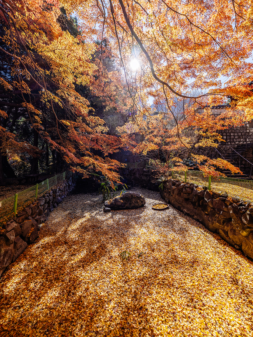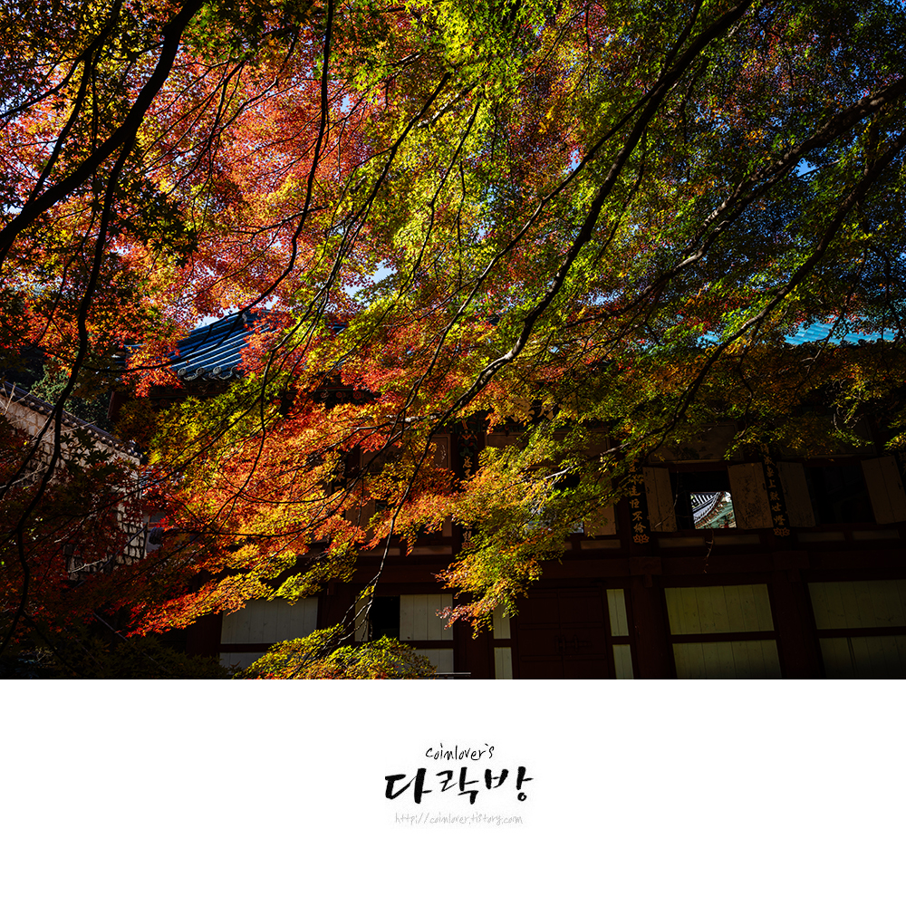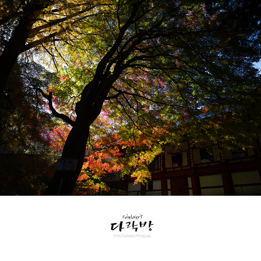 12월 5일의 용화사. 단풍은 완전히 물들었지만 은행나무 잎이 많이 떨어져버려 단조롭고 풍성한 느낌이 적다. 오히려 색이 다채로웠던 일주일 전이 더 나은 듯. 이제 내년을 기약해야할 풍경이다.