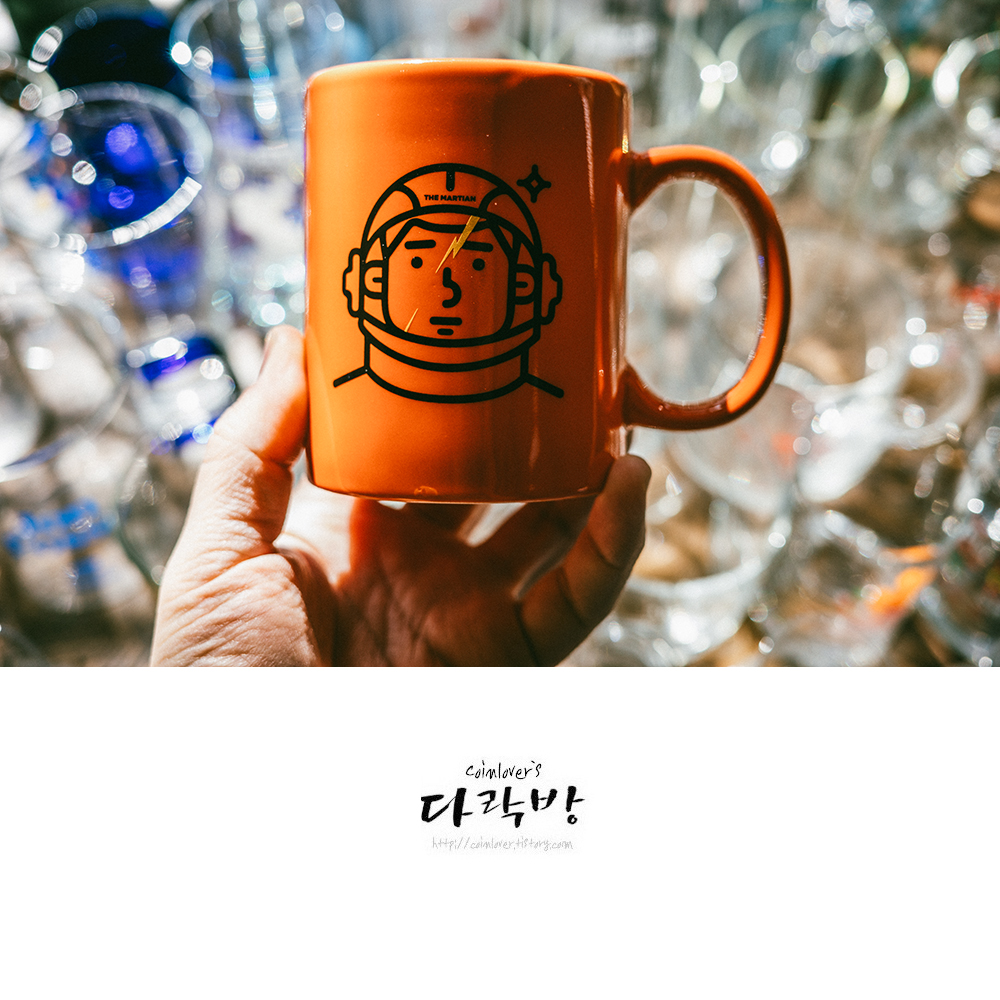 마션 머그컵. 알라딘굿즈 머그컵들 중 색이나 디자인이 가장 맘에 들었던.