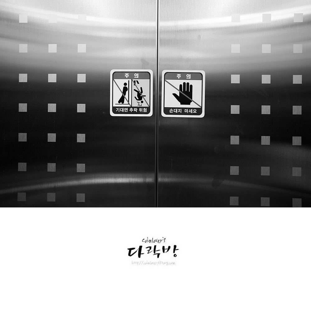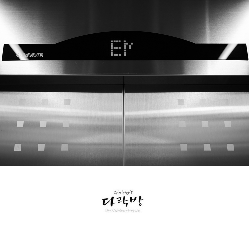 할 일이 없어 엘리베이터 문짝을 찍고 있는데