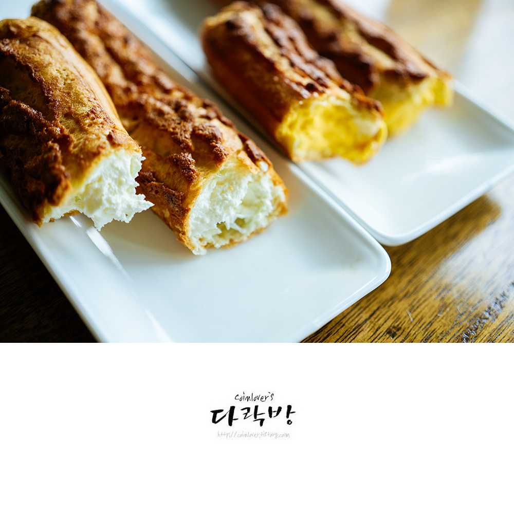 크림치즈와 커스타드 크림 크로칸슈를 사 와서 먹었는데 맛있다. 겉은 바삭하고 속은 부드럽다. 개인적으로는 크림치즈보다 커스타드가 2배 정도 맛있었다.