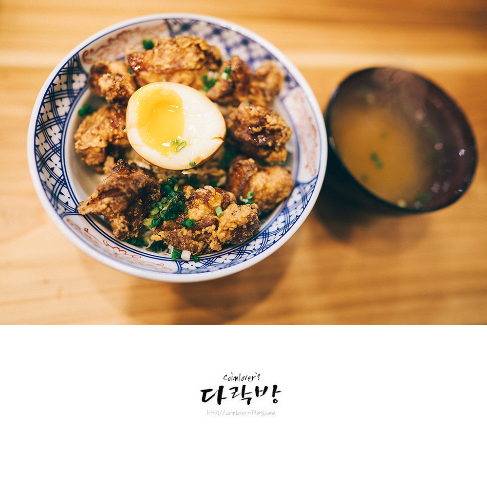 가라아게 덮밥. 텐동 스타일로 나오는데 맛이 괜찮다. 가라아게는 촉촉한 느낌이 강하다.