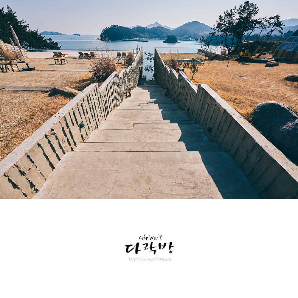 거제 장목에 있는 W181에 다녀왔다. 통영보다는 부산 쪽에서 가까운 곳이라 마음 먹고 달려가야했기에 오픈한지 한참이 지나서야 구경해볼 수 있었다. 주변에 글램핑용 방갈로 같은 것들을 조성하고 있어 조경이 어수선한 상태였다. 계단을 따라 내려가면 두개의 층으로 구성된 카페 내부로 들어갈 수 있다.