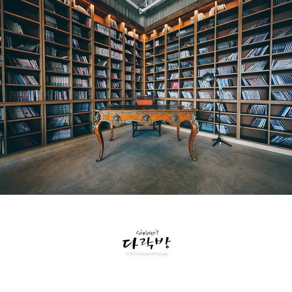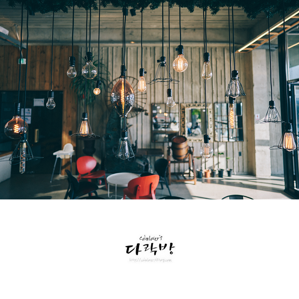 계단을 타고 내려가면 2층 공간과 거의 같은 규모로 넓은 1층이 나타난다. 이 카페에는 빈티지 소품이 즐비해있어 눈요기를 많이 할 수 있었다. 배치를 좀 더 멋지게 하면 좋을텐데 박물관 처럼 덩그러니 놓여있어서 아쉬웠다.