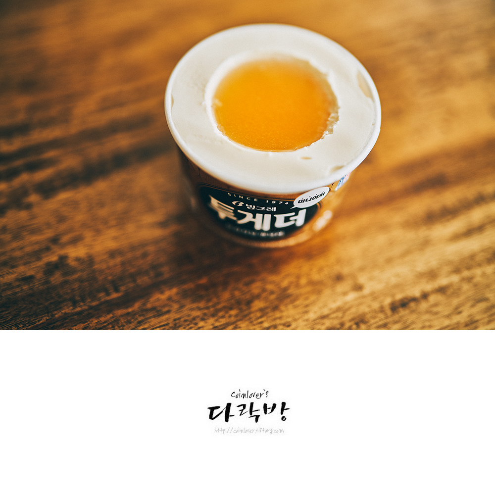 투게더 미니어처컵의 가운데를 한스쿱 퍼낸 후 위스키 반샷을 따른다. 위스키가 담긴 아이스크림의 가장 자리 부분부터 조금씩 떠 먹는다. 바닐라 아이스크림과 위스키가 만들어내는 시너지 효과를 제대로 즐길 수 있을 것이다.