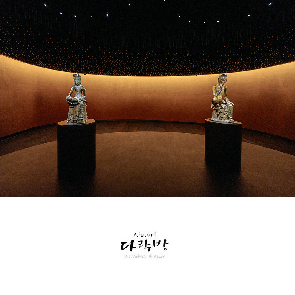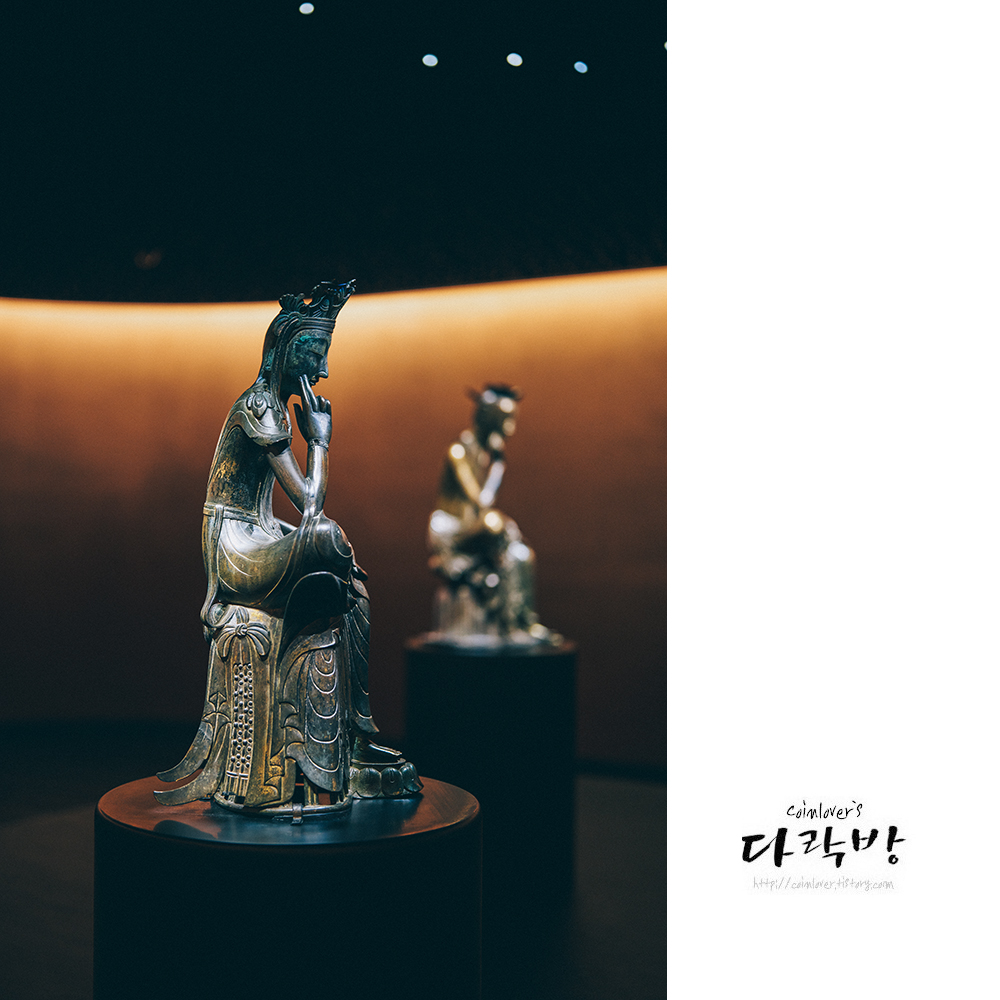 국립중앙박물관 사유의 방. 이게 너무 보고 싶어서 서울까지 갔다. 마음은 벌써 몇개월전에 가있었지만 코로나가 무서워 참고 참았던 것. 평일의 한가한 시간에 가서 사람 없는 사유의 방을 독점할 수 있었다면 더 좋았겠지만 휴일에 사람이 붐비는 때에 갔어도 그 매력을 어느 정도는 느끼고 올 수 있었다. 같은 반가사유상이지만 어떻게 전시를 하느냐에 따라 완전히 다른 느낌으로 다가온다. 2011년에 만났던 반가사유상의 모습과 완전히 다르게 느껴져서 신기할 정도였다.