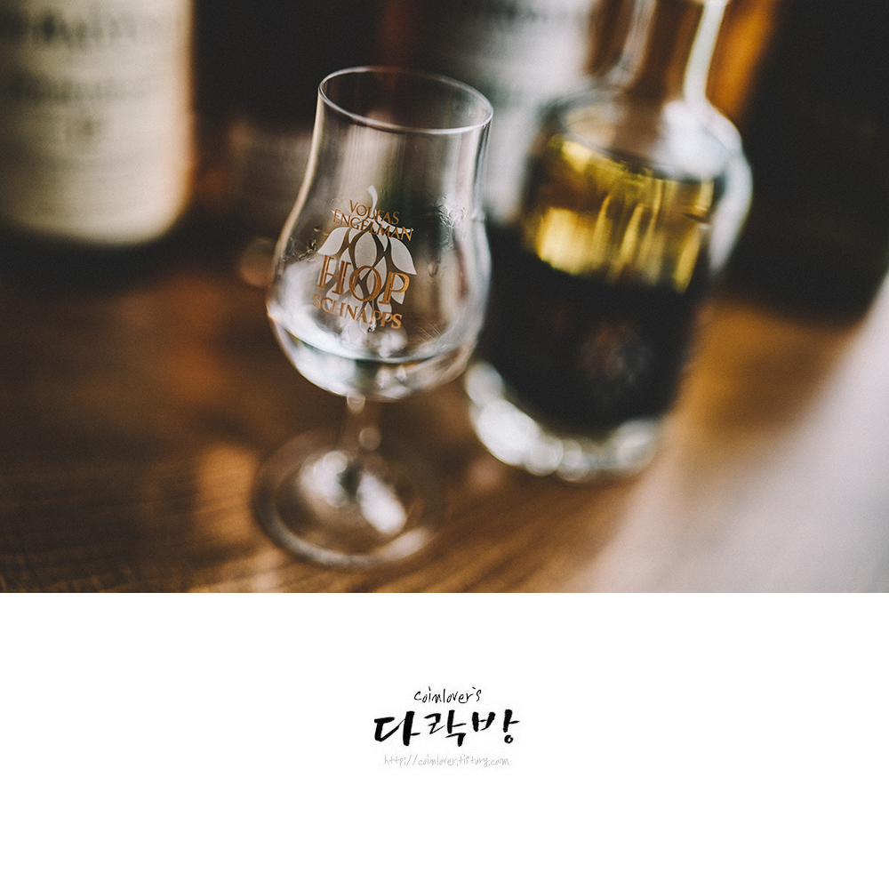 볼파스엔젤만 맥주를 증류해서 만든 일종의 스피릿. 보틀과 잔이 예뻐서 너무 구하고 싶었는데 아무리 찾아도 안보이더니 포기하고나니까 정말 우연히 손에 들어왔다. 사실 맛은 크게 기대하지 않았다. 다른 위스키 스피릿을 먹어본 적은 없지만 오크통 숙성을 하지 않은 원재료의 맛이 뭐 그리 대단할까 싶어서였다. 홉슈냅스의 경우도 보리향이 들어간 단맛 강한 증류소주 비슷한 맛이었다. 마시는 사람에 따라 이게 대체 뭐야 할 정도로 호불호가 갈리지 싶다. 인스타에 올라온 시음 후기를 보니 누군가는 마시고 전율이 느꼈다고 쓸정도로 임팩트가 강했던 모양인데 난 솔직히 음, 이런 맛이구나 정도의 느낌 뿐이었다. 절대 내 취향의 맛은 아니라 그냥 마시기는 애매하기만.... 하이볼용으로 소비하게 될 것 같다.