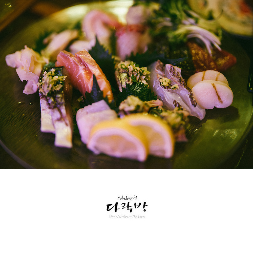 숙성회찬+토라 = 토라로 확장 재개업. 숙성회 모리아와세(소). 여전히 괜찮은 숙성회, 근데 플레이팅은 숙성회찬 시절이 좀 더 예뻤던 것 같다.