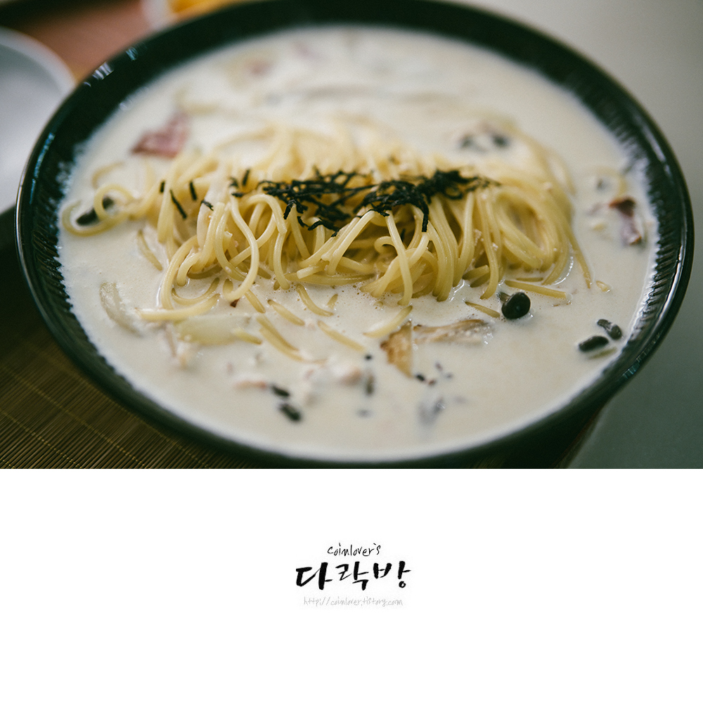 명란크림파스타는 소스가 자작하지 않아 국물요리 같다. 간이 괜찮고 무난한 맛.
