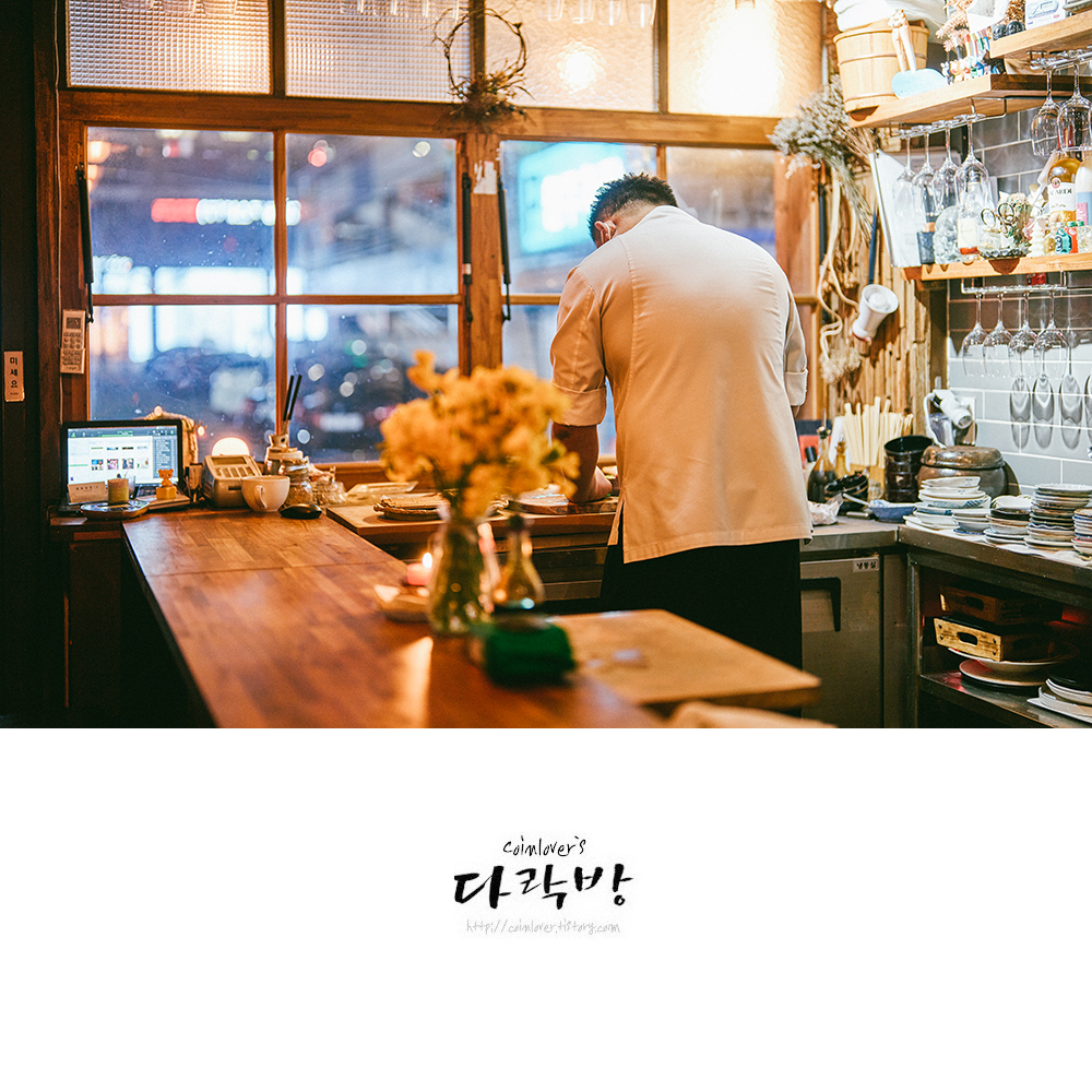 인스타그램 팔로우를 할 정도로 오너 셰프인 김엄마님에 대한 팬심이 충만한 나. 이 날은 웬일로 손님이 그렇게 많지 않아 사진 한 장 찍어도 될까요 하는 부탁을 할 수 있었다. 흔쾌히 허락해 주신 김엄마님. 팬심이 더 불타오를 수밖에.