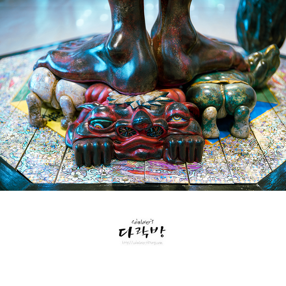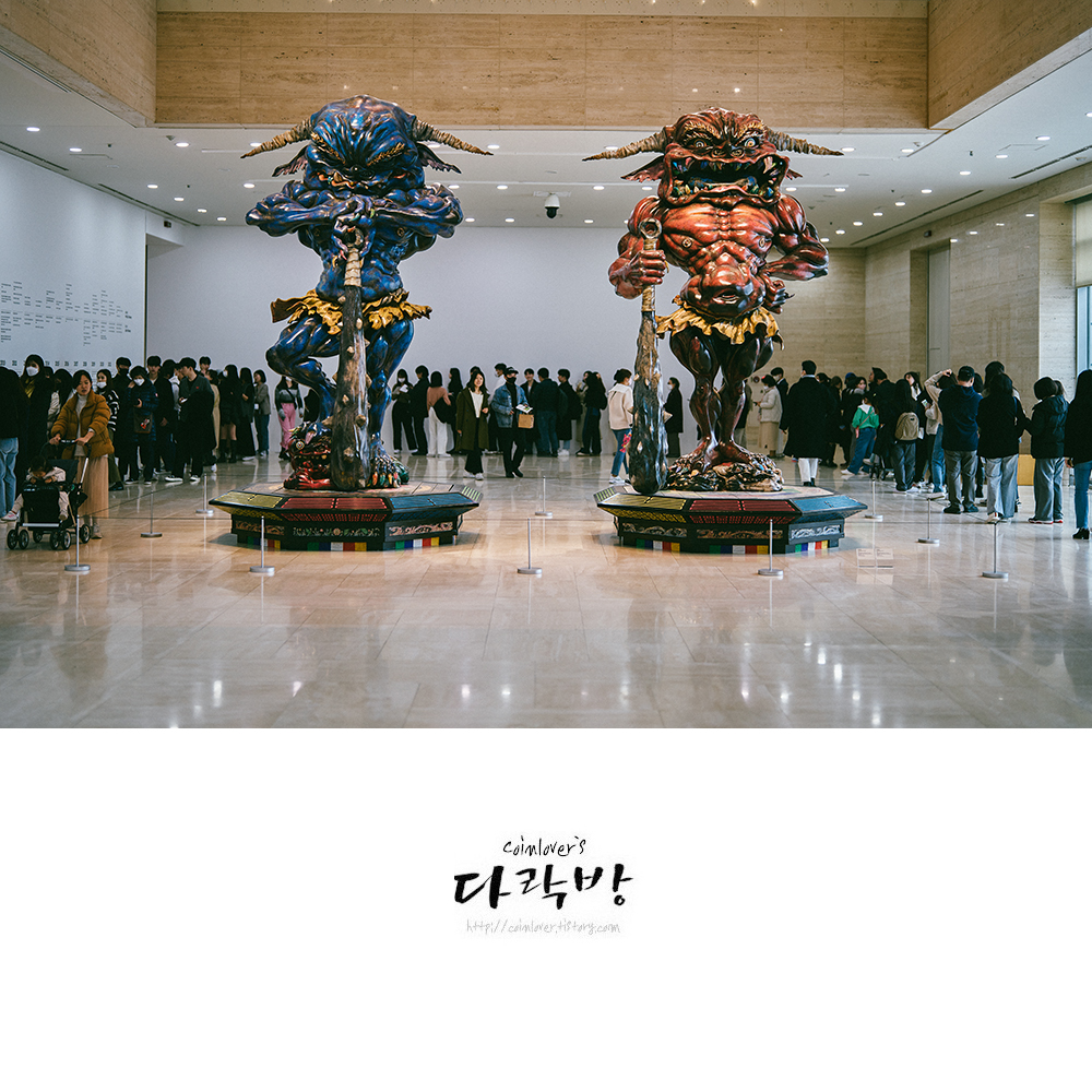 음의 화신과 아의 화신이라는 이름의 조형물 뒤로 길게 늘어선 줄. 로비 한바퀴를 훌쩍 넘은 대기 인파였다.