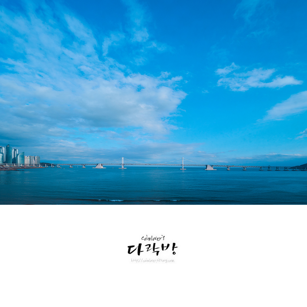 멀리 아이파크와 파크하얏트가 보였다. 다리 하나를 사이에 두고 분위기가 참 다르다. 회센터같은 것들이 모여 있는 광안리 쪽이 관광지 느낌이 좀 더 강한 것 같다. 그래서 평일에도 젊은이들이 넘쳐나는 듯.