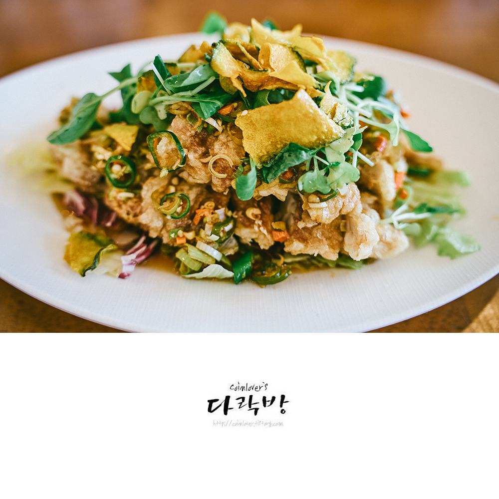 인기메뉴라는 유린기, 꽤나 볼륨감있는 닭고기를 잘 튀겨서 새콤 닮콤한 소스위에 올렸다. 중간 중간 섞여있는 고추가 매운 맛을 살짝 더해준다. 받자마자 튀김을 한점 먹어보니 닭 특유의 냄새가 치고 나와서 좀 그랬지만 먹다보니 소스가 스며들어 나아졌다. 무난하게 먹을만 하다.