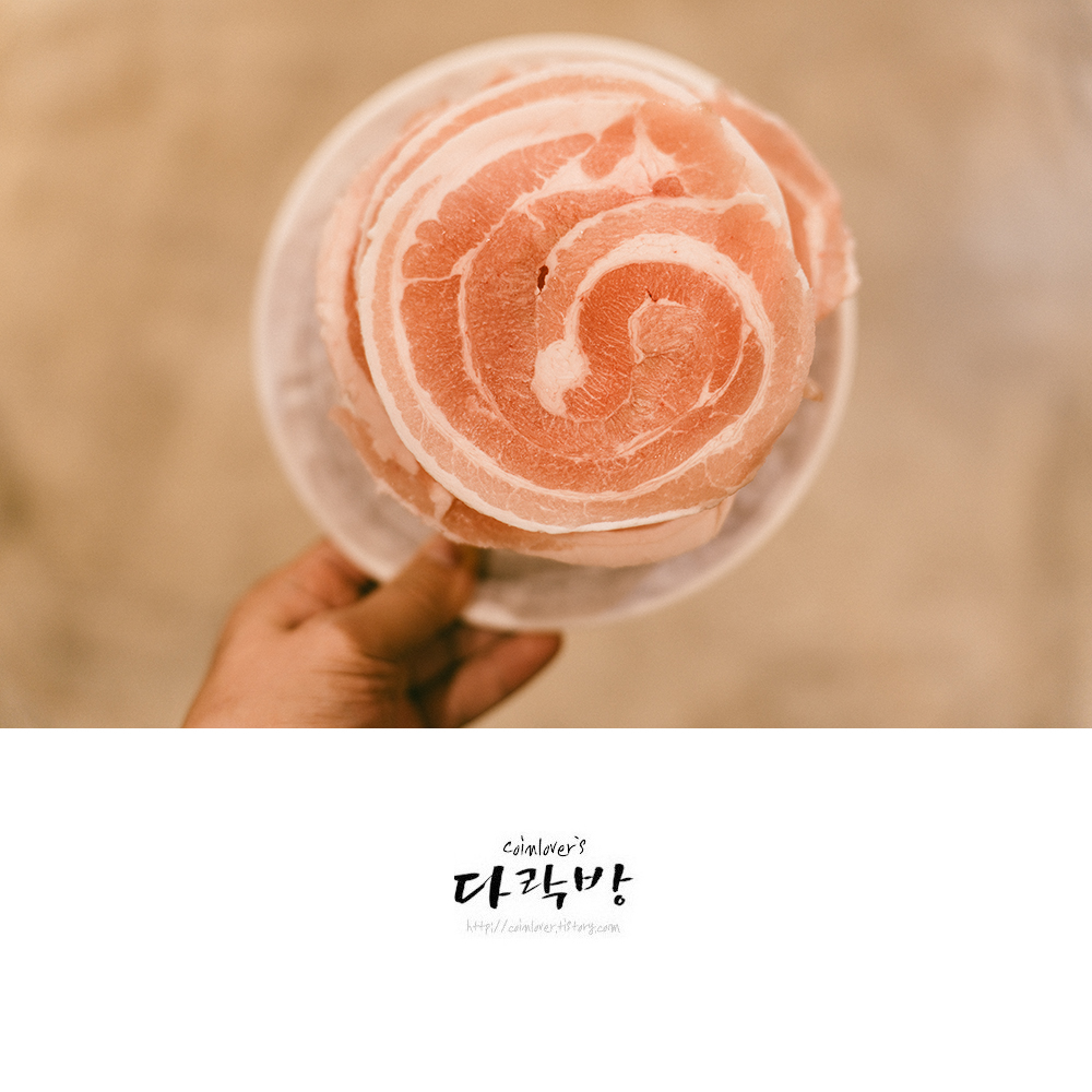 1판 500g 일반 식당에서 파는 꽃대패삼겹과 유사한 비주얼인데 아주 조금 더 두껍고 시간이 지나도