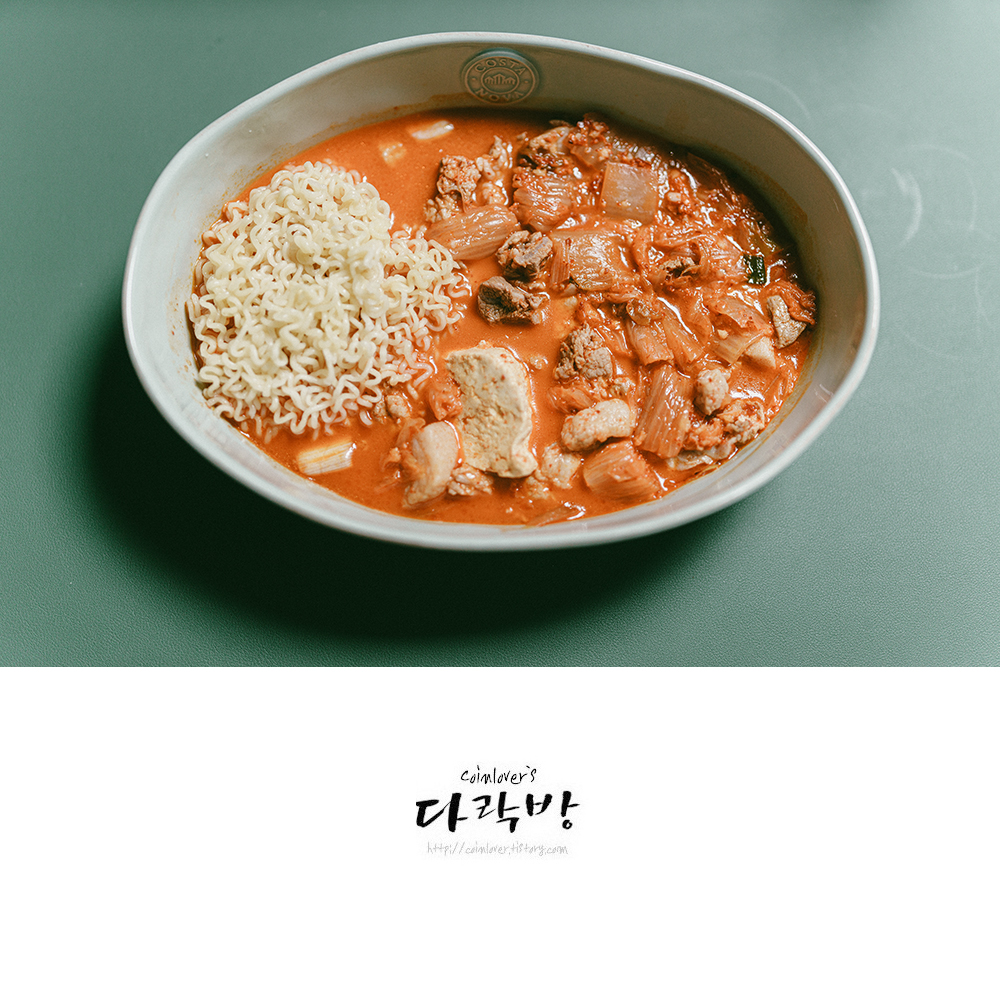 저녁은 한일식당 김치찌개에 라면사리.