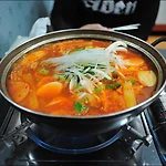 놀부부대찌게의 느끼한 맛에 실망하고 있던 중 (사실은 쉰 두부를 얹어서 나온게 결정타였다. ㅡ_ㅡ;;;) 대구의 적극 추천으로 처음 들러본 옥천식당~ 평소 그의 미각을 그다지 신뢰하지 않았던(?) 나였기에 큰 기대를 하지 않았건만.... 왠걸.... 진짜 맛있었다. 놀부의 느끼함이 완전히 날아가는 듯한 느낌~ 진짜 부대찌게 맛이 나는 것이었다. 김치찌게에서 진화한 듯한 깔끔하고 시원한 국물이 일품~ 게다가 푸짐한 반찬에 밥한공기쯤은 그냥 서비스하는 인심까지.... 역시 식당은 겉이 번지르르 한거보다는 맛이 있어야 한다는 단순한 진리를 보여주더라~ 가격도 5000원으로 저렴하니 앞으로 점심은 여기서 해결할 경우가 많을 듯 ㅋ 집에서 손수 담근 김치를 사용한 듯 감칠맛이 기막힌 옥천식당 부대찌게 ㅋ 저기 거..
